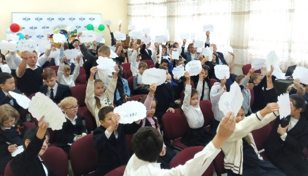 Школьники выполняли интерактивные задания в каждом разделе и в конце урока смогли сказать, что для них значит быть россиянином.